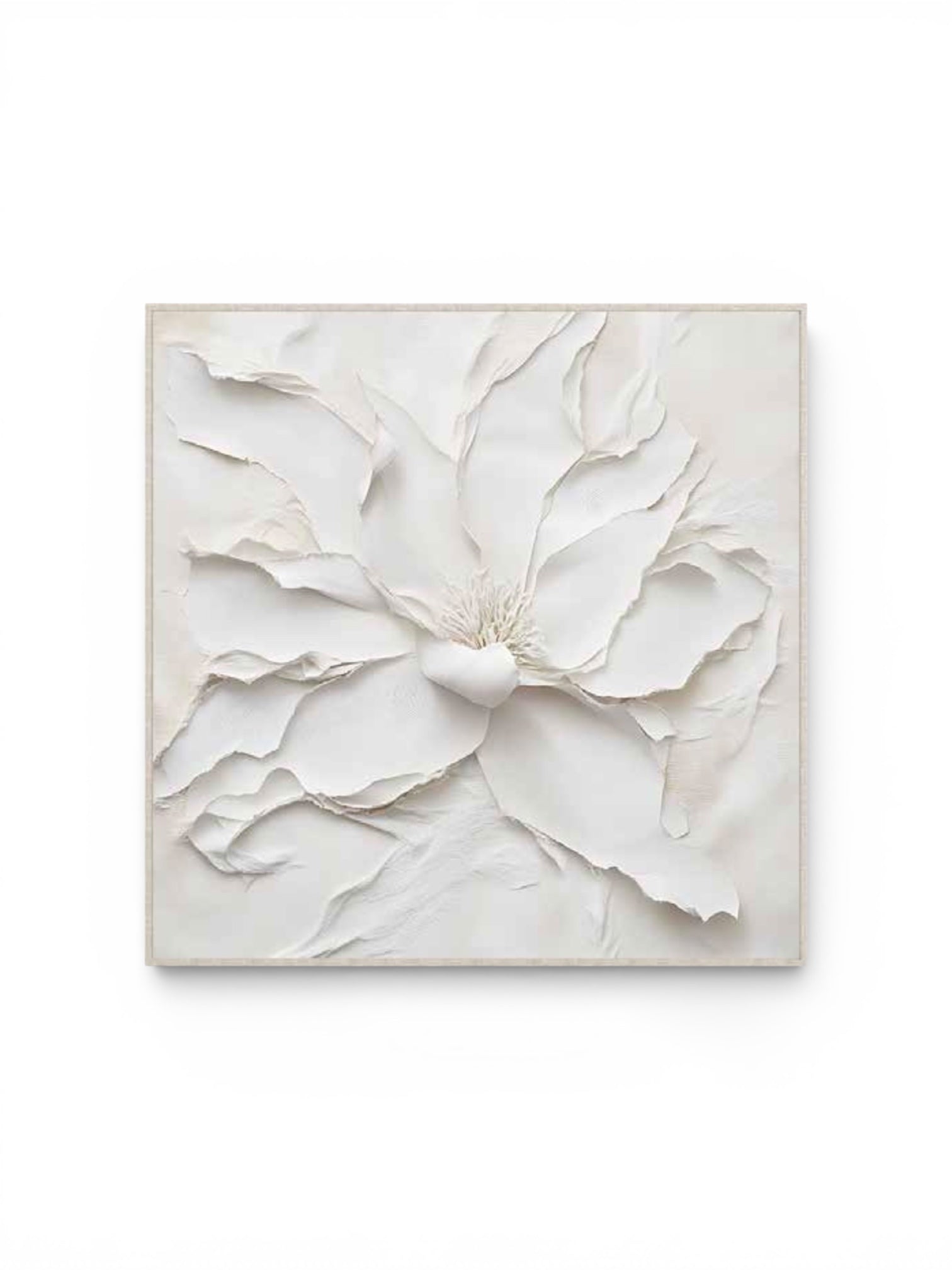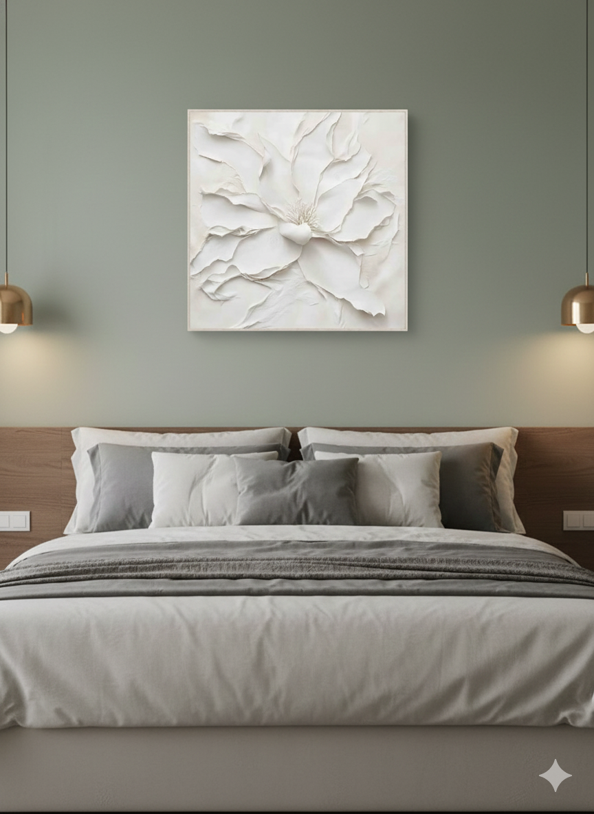 Ethereal Petals I(エセリアル・ペタルズ I) は、白の花びらを立体的に重ねあわせ、まるで浮遊するような軽やかな存在感を表現したアートパネルです。